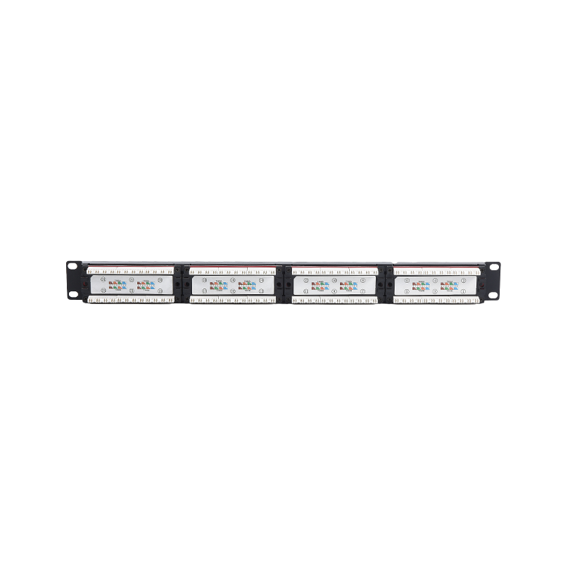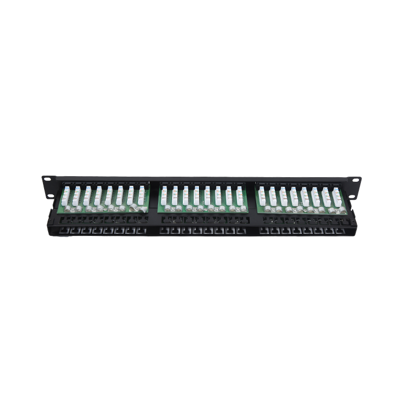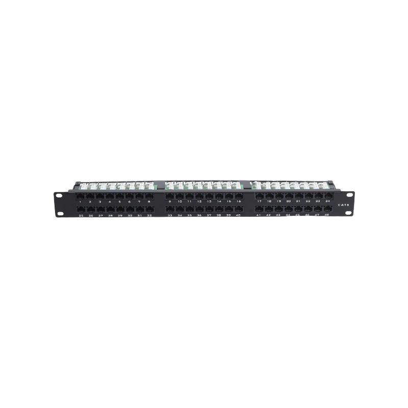 CAT5E/CAT6/CAT6Aパッチパネル:これらのパッチパネルは、CAT5E、CAT6、またはCAT6Aイーサネットケーブルを終了および管理するために特別に設計されています。コンピューター、スイッチ、ルーター、サーバーなどのさまざまなネットワークデバイスからのイーサネットケーブルの接続に対応するための複数のポートを提供します。通常、24ポート、48ポートなどの構成で利用でき、最大10ギガビットイーサネットまでのデータ送信速度がサポートされます。